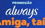 Conheça a Promoção Always 2021 amiga taí e saiba como ter a chance de ser contemplado com R$ 10 mil. O mais legal dessa promoção é que serão distribuídos como brindes créditos de R$ 10,00 para celular. Não deixe de garantir as suas chances de ser contemplado.