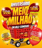 O primeiro passo para participar dessa promoção consiste em fazer suas compras nas lojas da rede Multishow Supermercados. Para cada R$ 50,00 em compras será gerado 01 número da sorte. Quanto mais você comprar mais chances terá de ser contemplado. Caso tenha feito o pagamento da sua compra válida com um cartão MultiShow serão concedidos 02 cupons para concorrer.
